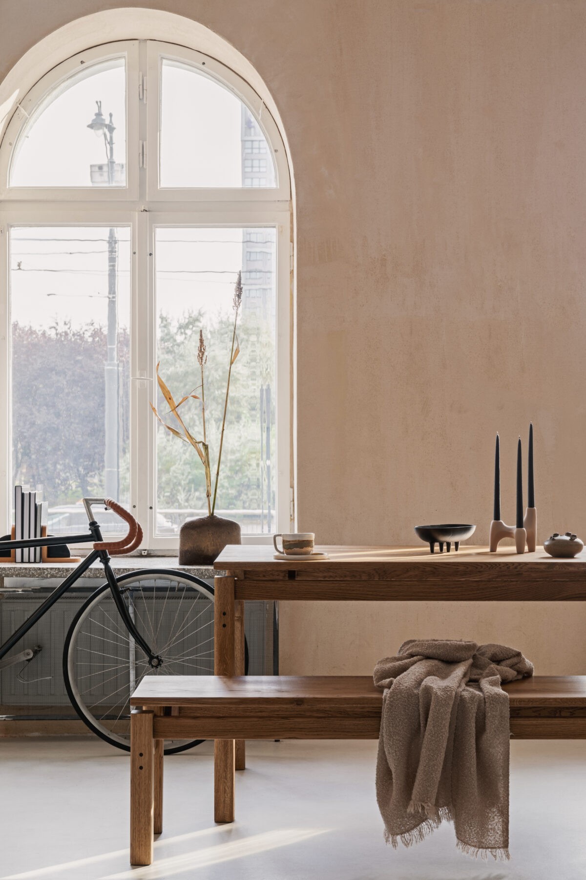 Mesa retro em sala moderna