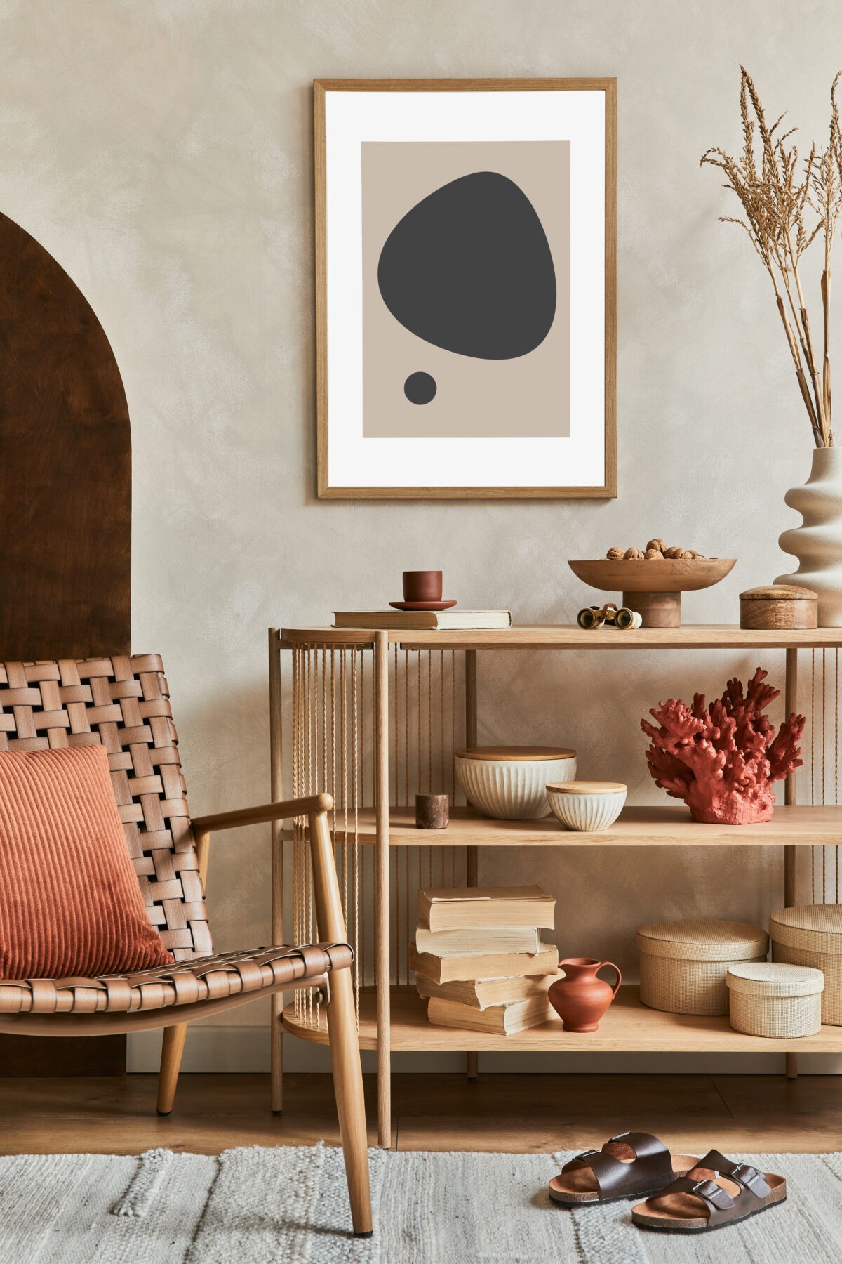 Sala minimalista com toque retro
